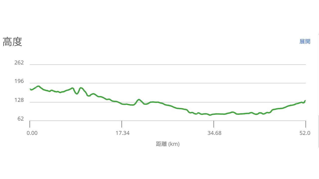 下り基調といっても速度が出すぎるような下りではありません。体感はほぼ平地なので「なんか今日速度が乗るなあ。調子いいかも?」とまるで速くなったと錯覚する感じです。