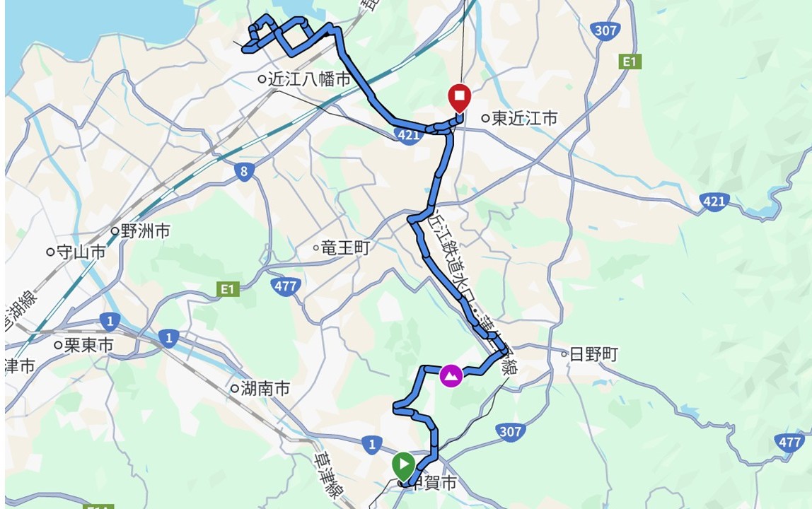 スタート地点は甲賀市役所(水口城南駅目の前)。高の原から車で1時間15分くらいでした。