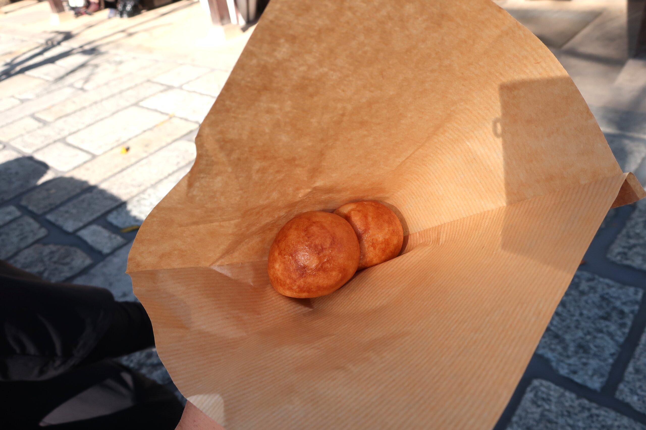 おじさん2人でウロウロするのはちょっと気が引けたので、おみやげのバウムクーヘンだけ購入してささっと退散。こういう感じでお土産を買いたい時は折り畳みのビニールリュックを用意しておくと便利ですね。