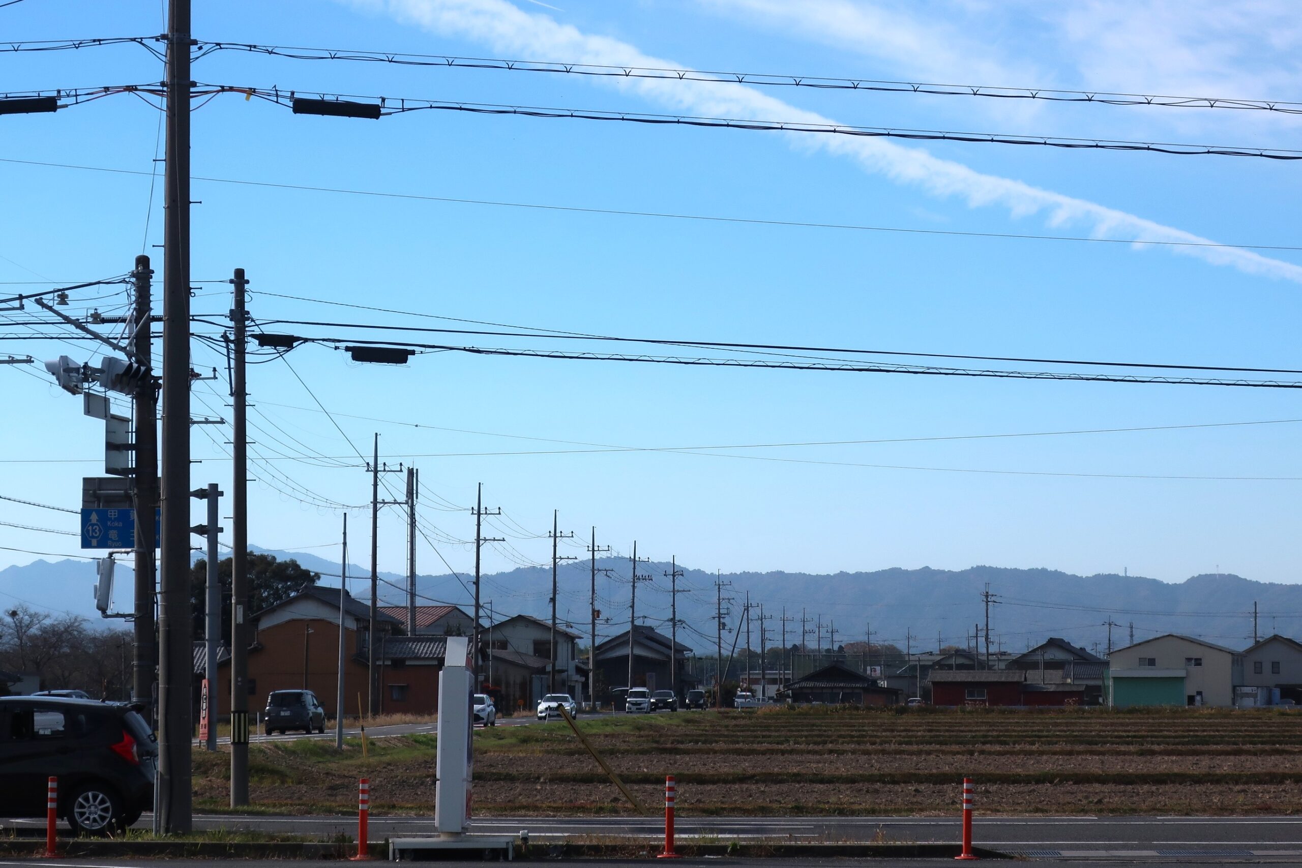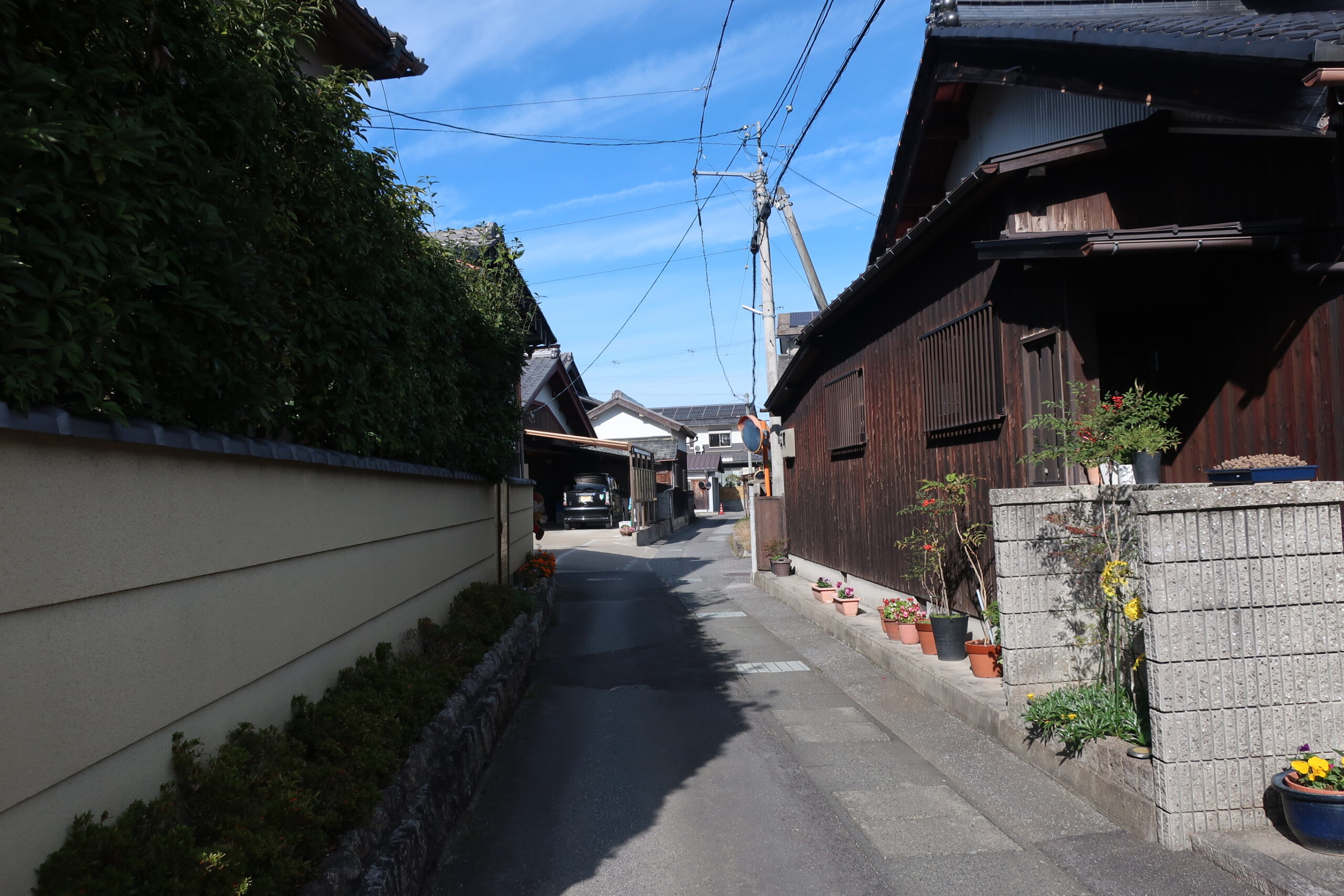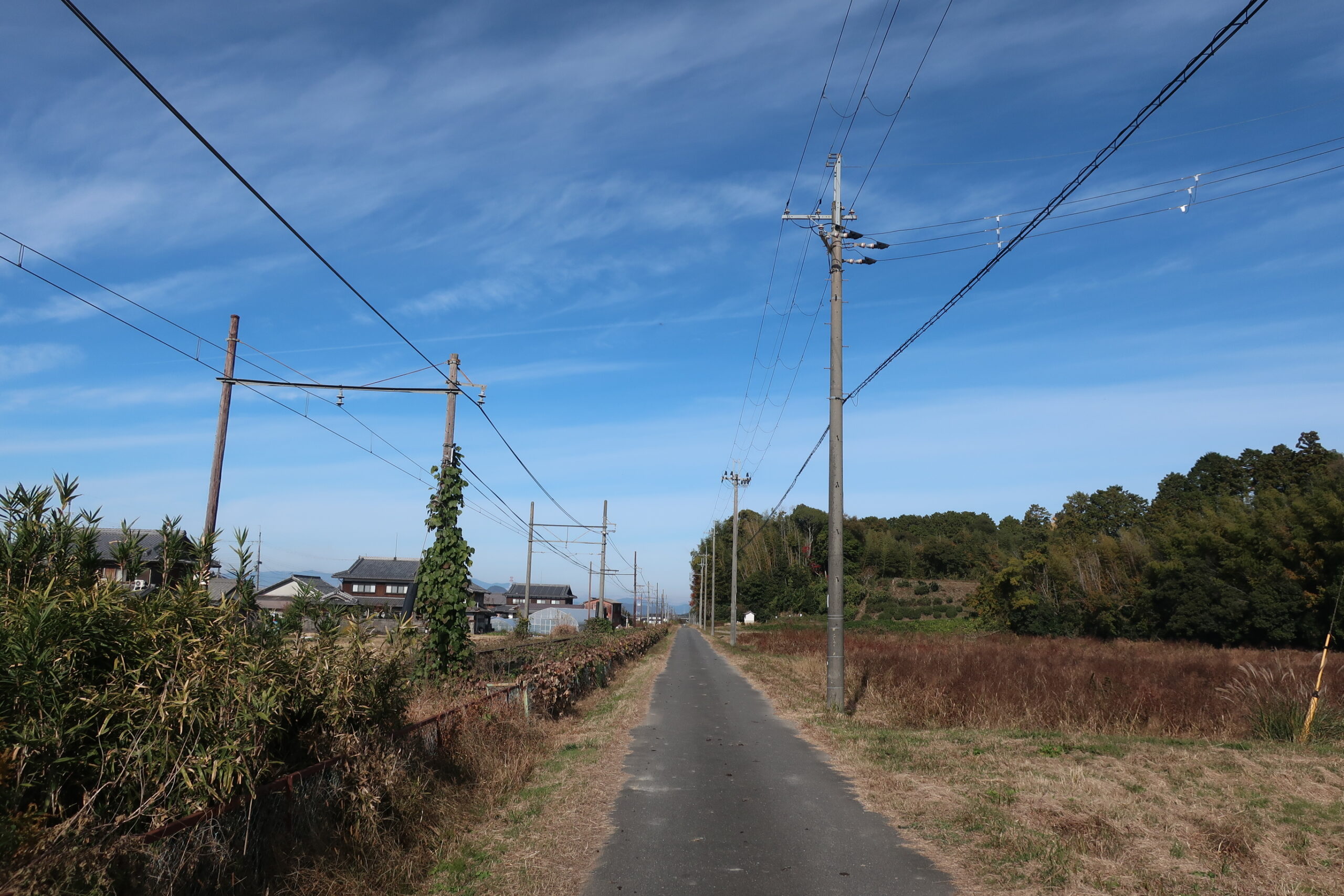 完全にまっすぐ1本道という訳でもないですし、少し細めの路地なんかもありますが、近江鉄道の架線から離れないよう目印にしておけば特に迷うことはないと思います。