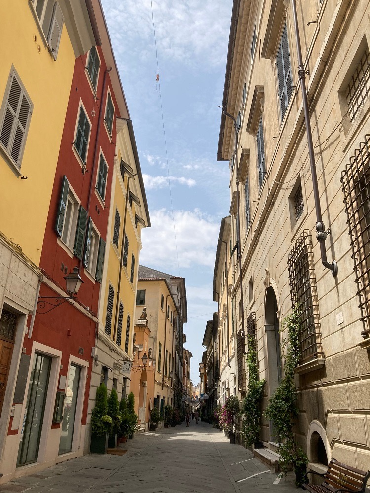 ジェノヴァから海沿いに南へ電車で2時間ほど移動しました。よさそうな宿と自転車によさそうな地形を理由に選んだ、特に名所などはない小さな町です。観光案内所で往復20~30kmほどのおすすめのサイクリングコースを教えてもらいました。それなりに自転車道はありましたが、トラックに怯えながら幹線道路の脇を行くしかないところもあり、なかなか冒険の旅でした。