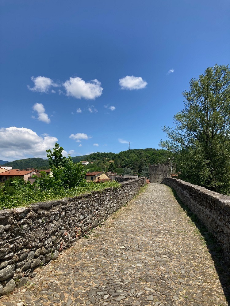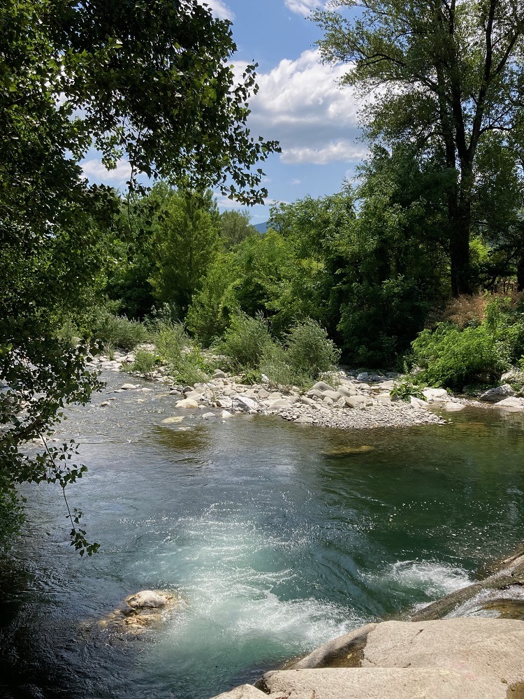 古い町だったので、ローマ時代のこんな橋も。橋の下の川には白い大理石がごろごろ。