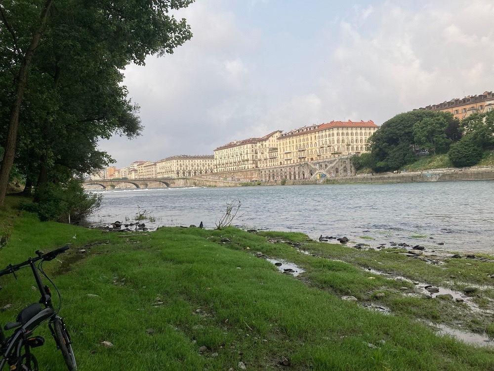トリノにはポー川と言う大きな川があり、最終日の午前中は川沿いの自転車道を走りました。川沿いの大きな並木の下に自転車道があり、日曜朝だったため地元のサイクリストもたくさん走っていました。