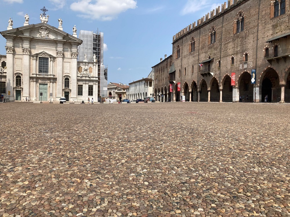 かつてこの町の領主だった貴族が雨の日に服の裾を濡らさないように、と大きく丸い石で石畳を敷いたことで有名で、自転車ははじっこのわずかな平地を探しながら走ります。