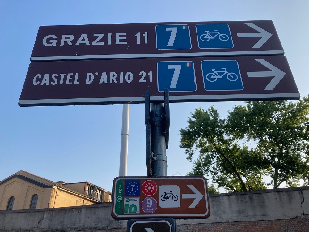 自転車用の標識。ユーロヴェロ7は「太陽の道」というやつですね!
