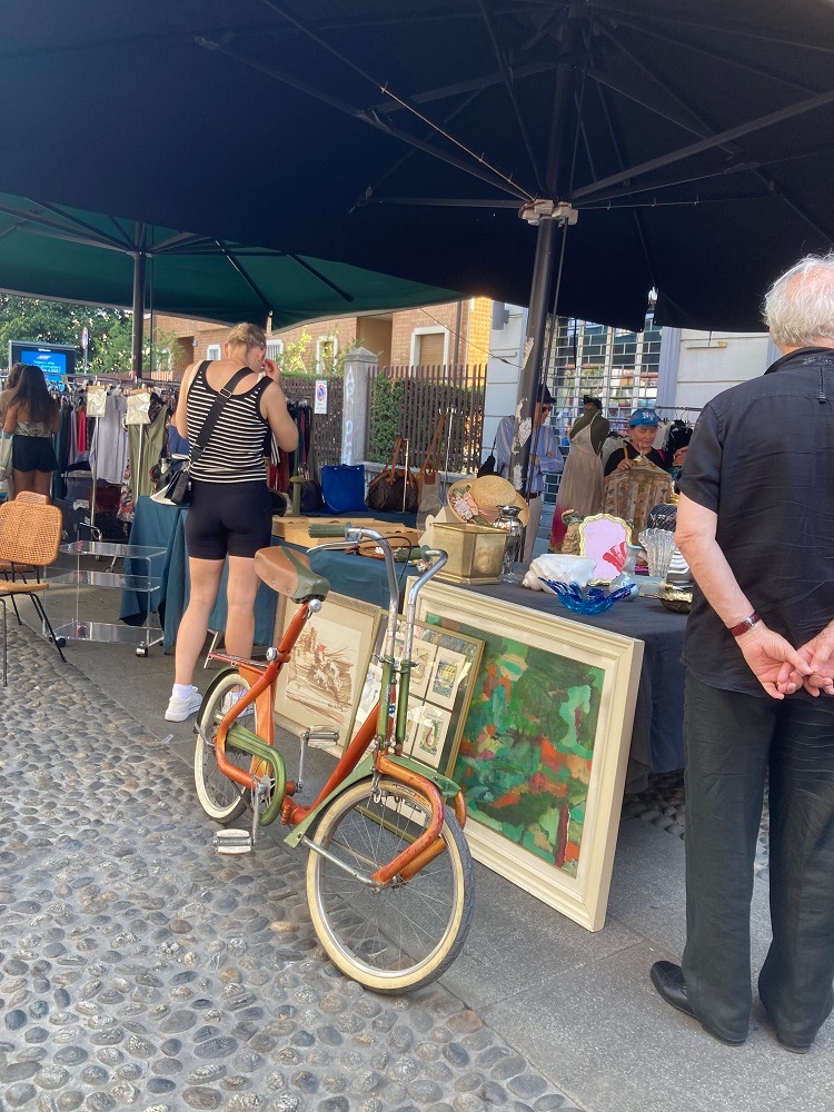 毎月最終日曜に開催される運河地区での骨董市には、アンティーク?の自転車も!