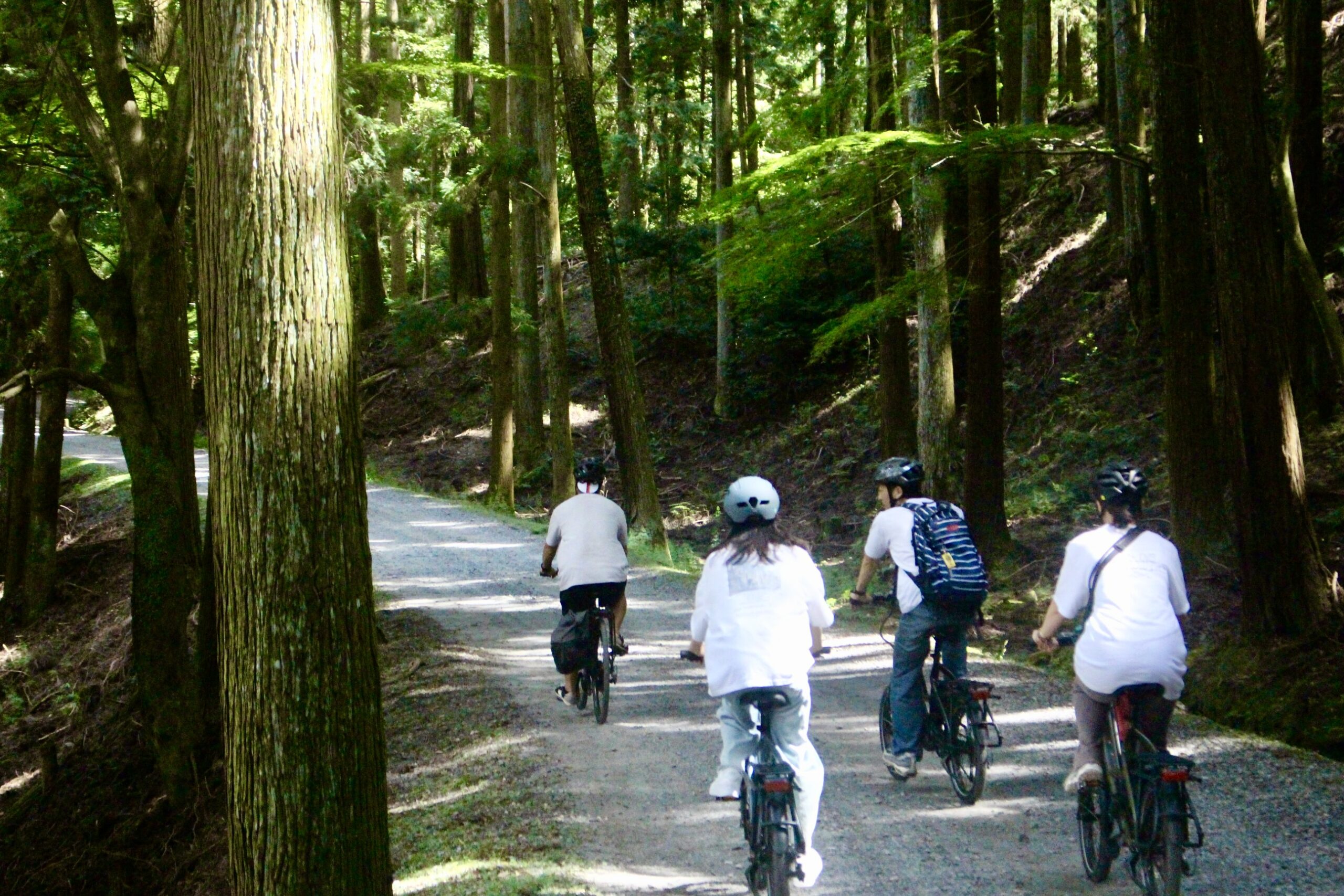深い森の空気を吸って、守ってきた人間の営みを感じる。それに加えて自転車で森を行くと、次第に冒険心を掻き立てられます。終盤の緩やかな下り坂ではエキサイティングな一面もあるので、童心に帰ってサイクリングを楽しんでください。